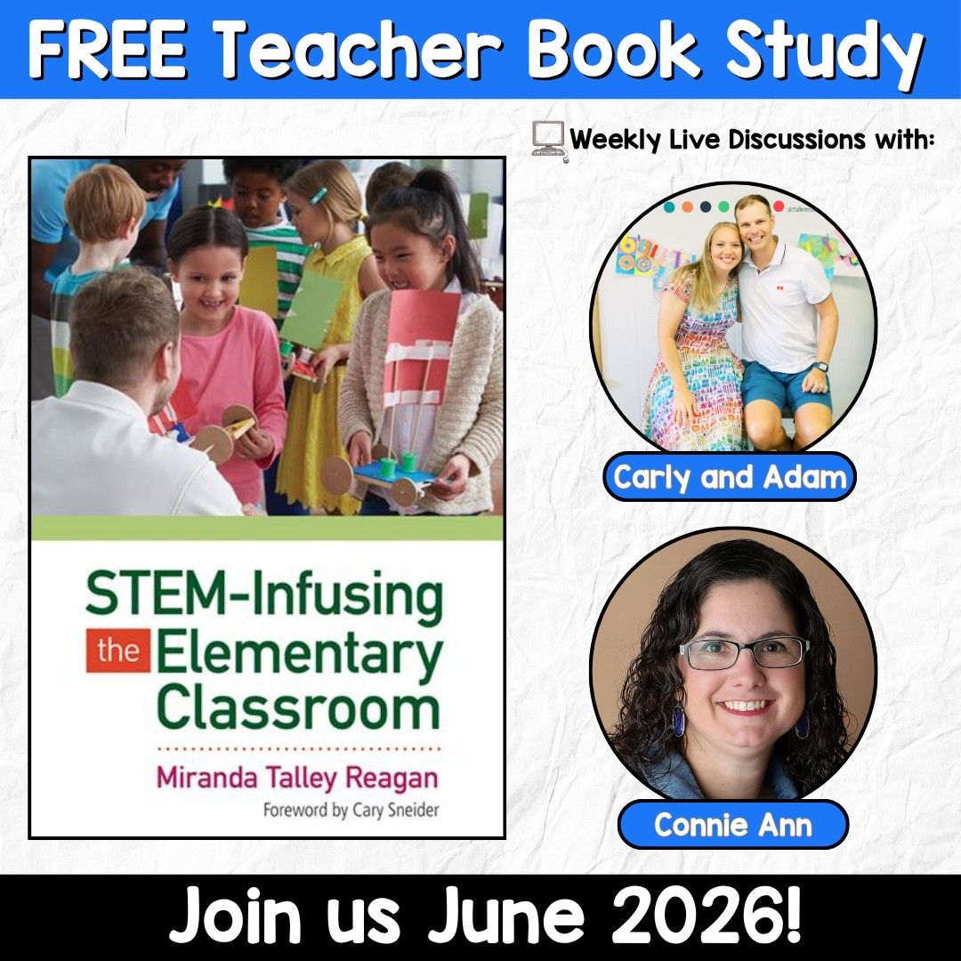 The book study activities will take place in June in our FREE Facebook Group: “Elementary STEM Teachers with Carly and Adam”.